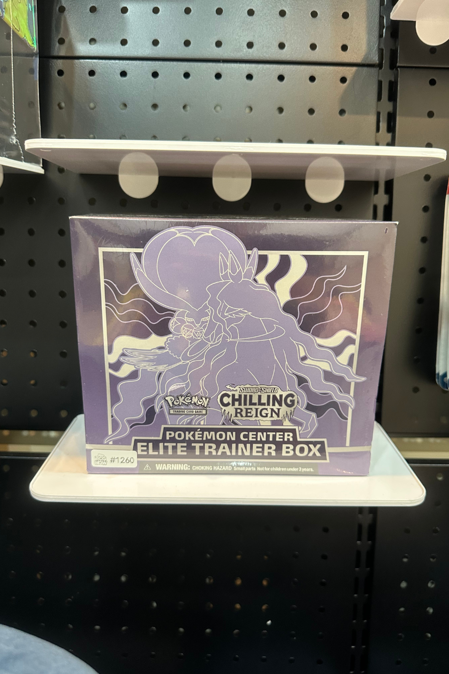 This auction features the Chilling Reign Shadow Rider Pokémon Center Elite Trainer Box from the Pokémon TCG: Sword & Shield—Chilling Reign expansion. This Pokémon Center exclusive Elite Trainer Box is a premium sealed release, offering additional collector appeal through Pokémon Center–branded packaging and themed contents tied to the Shadow Rider Calyrex line.