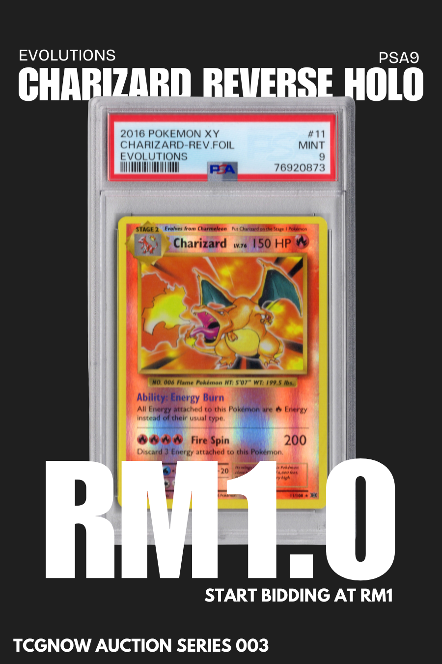 TCGNOW Auction 003 – Charizard Reverse Holo Evolutions 11/108 PSA 9
